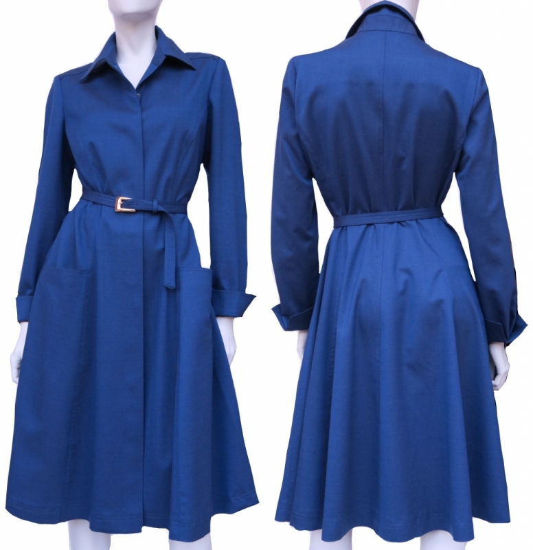 De Robe-Manteau in antraciet kleurige coolwool met een beetje stretch, kan op meerdere manieren worden gedragen. Elegant als één stuk met bijpassende ceintuur maar ook in combinatie met een vest of jasje. Alle randen zijn afgewerkt met piping biesjes van dezelfde stof voor een extra luxe uitstraling.