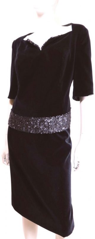 De Jurk lijkt een losse top met rok maar is het niet, het is één geheel dat met een blinde rits midden achter wordt gesloten. Het bovenlijfje is geheel met de hand geborduurd omdat de machine dit niet kan stikken. Het resultaat is als het ware geboetseerd, in plaats van klei wordt met de hand de zijde en zachte paillet om het lichaam heen geborduurd.